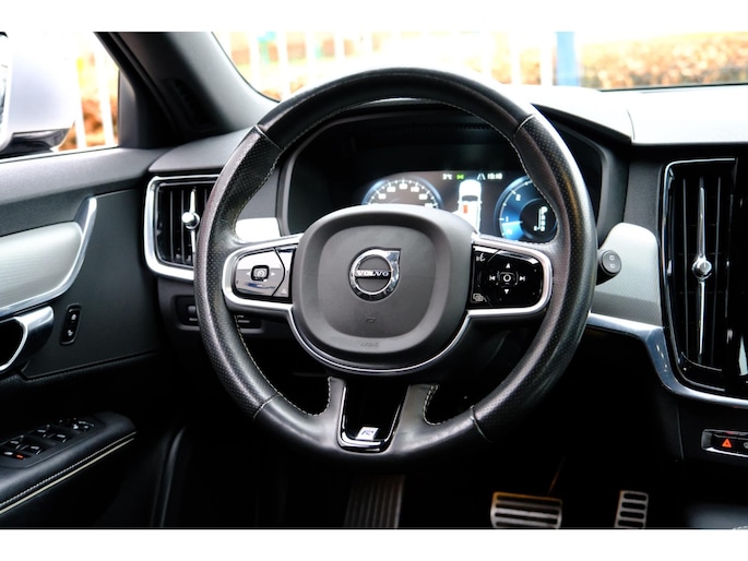 Met het digitale dashboard in deze auto kunt u de interface van uw cockpit personaliseren. Met adaptive cruise control houdt de auto zelfstandig afstand tot uw voorligger. Een veiligheidsverhogende optie waarmee u comfortabel onderweg bent. Een smartphone met internetverbinding legt eenvoudig overal contact met de auto. U kunt functies activeren en de conditie van de auto monitoren. Het audio-installatiesysteem bedient u met knoppen op het stuur of met gesproken commando's. De sensoren van de achteropkomend verkeer waarschuwing houden zicht op de dode hoeken achter u. Te weinig afstand tot de achterligger? Het systeem geeft direct een signaal. Ook R-design, electronic climate control, parkeersensoren achter, regensensor, automatisch dimmende buitenspiegels en centrale deurvergrendeling met afstandsbediening zijn aan boord.
