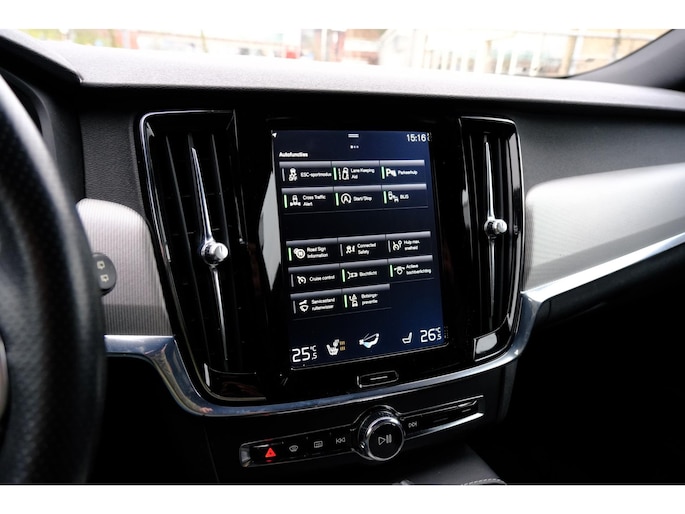 In de Volvo V90 heeft uw veiligheid en die van uw omgeving prioriteit. De camera van de verkeersborddetectie herkent verschillende soorten verkeersborden en toont deze op het dashboard. Met het Lane-keeping systeem komt u nooit per ongeluk buiten de rijstrook. Vermoeidheidsherkenning is een systeem dat met verschillende sensoren tekenen van vermoeidheid bij de chauffeur waarneemt. Deze krijgt tijdig een waarschuwing, wat ongelukken kan voorkomen. Met voorzieningen als dodehoekdetectie, accident avoidance system, hill hold functie, brake assist en bandenspanningcontrolesysteem, bent u altijd veilig onderweg.