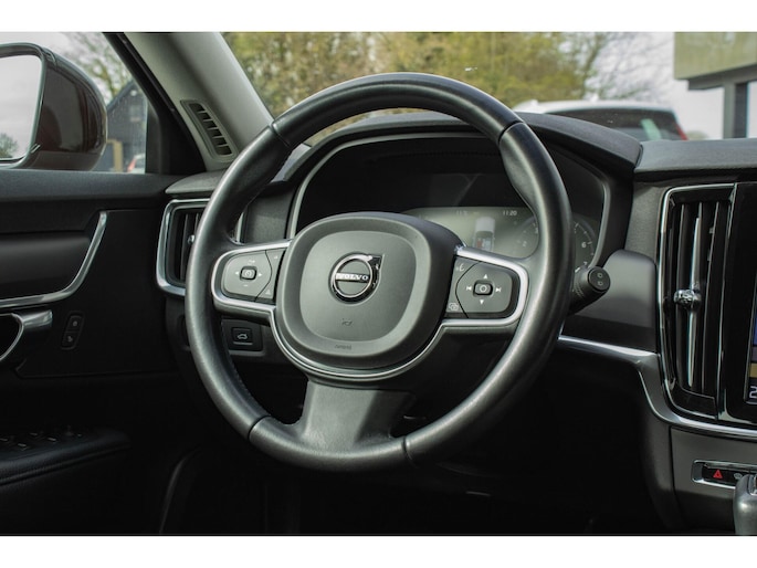 Met adaptive cruise control houdt de auto zelfstandig afstand tot uw voorligger. Een veiligheidsverhogende optie waarmee u comfortabel onderweg bent. Deze Volvo V90 is voorzien van remote services. Via uw smartphone bedient u diverse functies ook op afstand en krijgt u informatie over de status van uw auto. Met spraakbediening of de knoppen op het stuur regelt u het audio-installatiesysteem, terwijl u uw blik op de weg gericht houdt. De achteropkomend verkeer waarschuwing geeft een signaal als degene achter u te dicht op u zit. Ook handig en veilig bij het wisselen van rijbaan. De auto is ook uitgevoerd met electronic climate control. De Volvo is standaard voorzien van: WIFI-hotspot, parkeersensoren achter, regensensor, automatisch dimmende binnenspiegel, centrale deurvergrendeling met afstandsbediening en bagage afdekhoes.