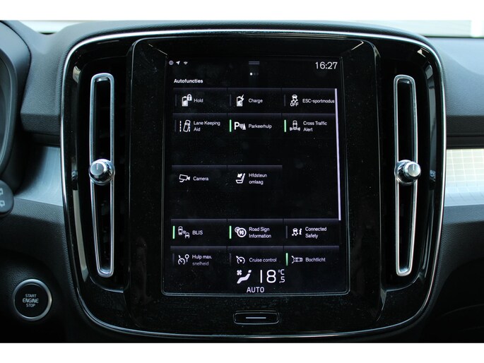 Zoals u mag verwachten van deze Volvo XC40 is hij uitgerust met een reeks aan actieve veiligheidssystemen. In het instrumentarium ziet u tijdens de rit ook de belangrijkste verkeersborden aangegeven, die de auto automatisch voor u leest. Keep your lane? Het Lane-keeping systeem zorgt er automatisch voor. Een aanrijding met een andere weggebruiker die zich in uw dode hoek bevindt, heeft meestal ernstige gevolgen, zeker bij kwetsbare verkeersdeelnemers. De actieve dodehoekdetectie helpt dit risico sterk te verkleinen. Dankzij veiligheidsvoorzieningen als forward collision warning system, hill hold functie, brake assist, vermoeidheidsherkenning en bandenspanningcontrolesysteem, bent u steeds veilig onderweg.