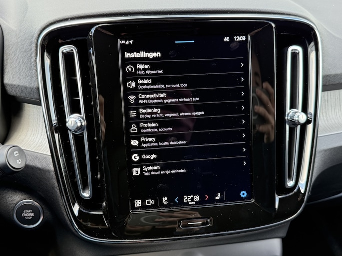 Het interieur van de Volvo XC40 B4 Plus Dark is voorzien van luxueuze afwerkingen en handige snufjes, zoals de binnenspiegel met Dimautomaat die automatisch de lichtintensiteit aanpast aan de omgeving. De airbag aan passagierszijde is uitschakelbaar, wat ideaal is als je een kinderzitje op die stoel wilt plaatsen. Bovendien zorgt de knie-airbag aan de bestuurderskant voor extra bescherming in geval van een aanrijding.