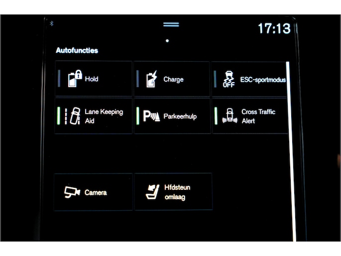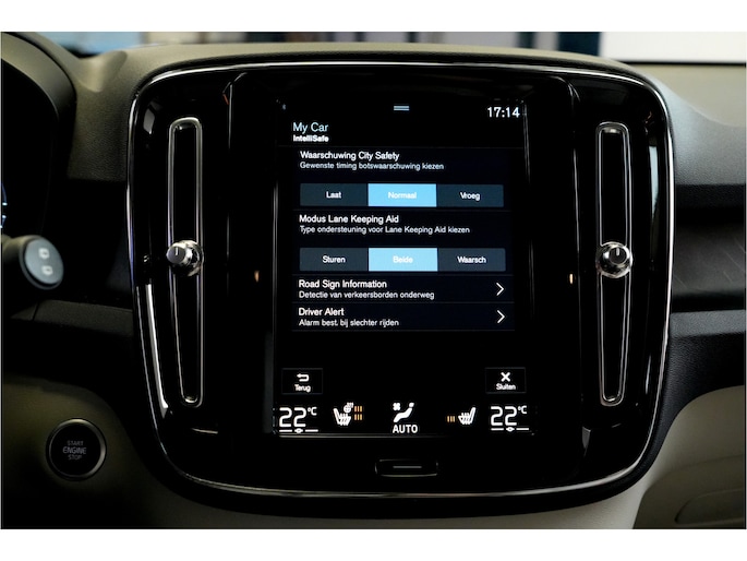 De automatische veiligheidssystemen in deze Volvo fungeren als een extra paar ogen. En dat niet alleen, ze kunnen ook actief ingrijpen, om zo u en uw passagiers te beschermen. Tijdens de rit hebt u altijd een bijrijder, want de verkeersbord-detectie leest de borden langs de weg en projecteert ze voor u op het instrumentarium. Indien u onbedoeld de rijstrook lijkt te verlaten, reageert het Lane-keeping systeem meteen en corrigeert. Voertuigen of personen buiten uw zicht kunnen gevaar opleveren. De actieve dodehoekdetectie (BLIS) waarschuwt direct. Ook helpen het City Safety System, forward collision warning system, hill hold functie, brake assist, vermoeidheidsherkenning en bandenspanningcontrolesysteem, uw rit tot een veilige rit te maken.
