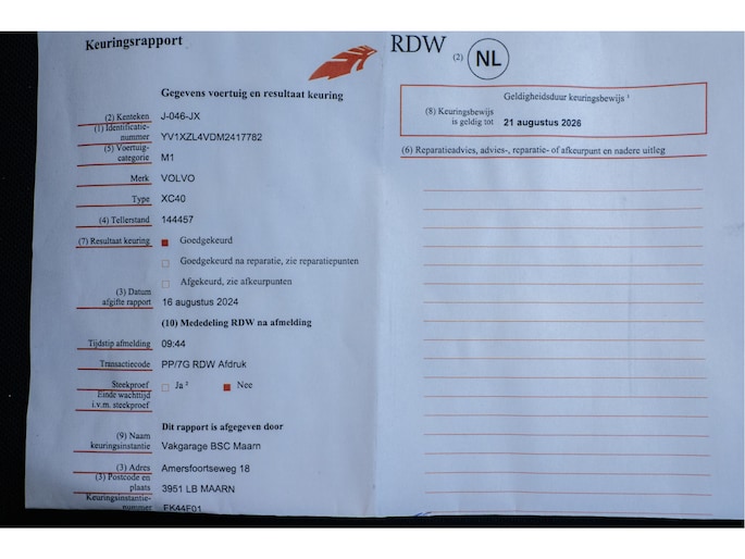 Kilometerstand gecontroleerd