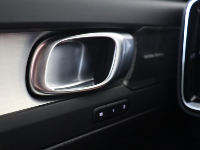 De diepblauwe kleur van deze XC40 zorgt voor een elegante uitstraling die zeker opvalt op de weg. Het metallic lakwerk geeft de auto een glanzende finish die de aandacht trekt. Daarnaast zijn de exterieur delen uitgevoerd in een stijlvolle zwarte glans, wat het geheel een moderne en sportieve look geeft.