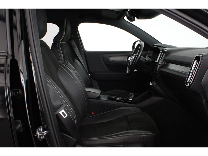 Het R-Design exterieur geeft deze XC40 een unieke en dynamische uitstraling. De zwarte lak, de grote 20-inch lichtmetalen velgen en het extra getinte glas versterken het stoere karakter. De all-season banden zorgen daarbij het hele jaar door voor optimale grip. De afneembare trekhaak maakt het mogelijk om eenvoudig extra lading of een fietsendrager mee te nemen wanneer u dat wenst.