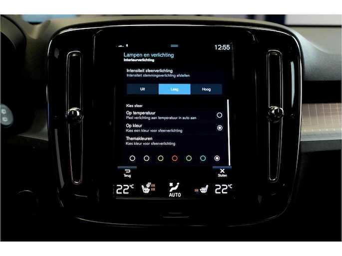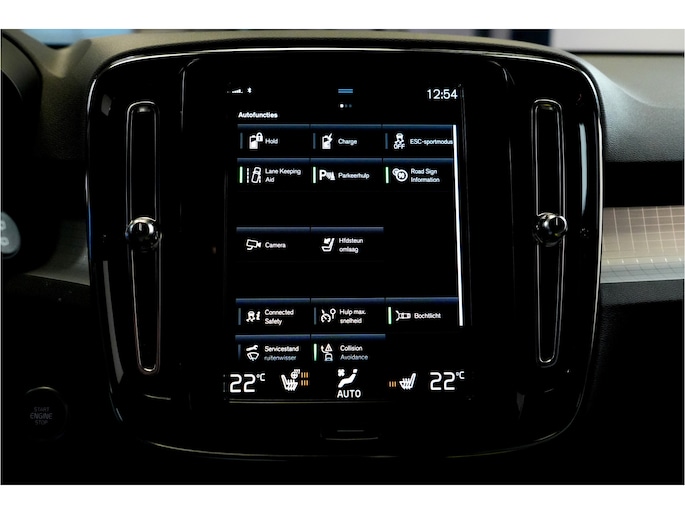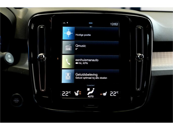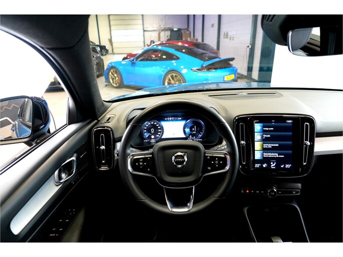 Een Volvo heeft een heel eigen stijl, dat ziet u ook aan deze XC40, met zijn fraaie lijnen en zijn comfortabele interieur. Bovendien is deze krachtige auto voorzien van belangrijke veiligheidsvoorzieningen. De aanwezige hybride motor is een slimme extra. Tijdens het rijden en remmen laadt de accu bij, zodat de elektromotor de brandstofmotor kan ondersteunen of het zelfs helemaal overnemen. Dat scheelt in kosten! Inladen is een eitje met de elektrisch bedienbare achterklep. En voor een frisse wind tijdens de rit is er het elektrisch bediende glazen panorama dak. 's Winters komen de verwarmbare voorstoelen heerlijk van pas. Scherpe bochten, pittige acceleraties? In de sportstoelen blijft u altijd in positie. Natuurlijk kunt u zonder. Maar waarom? Lekker toch, zo'n verwarmd stuurwiel? Vergeet halogeen; deze koplampen gebruiken de allernieuwste matrix LED-technologie met maximale lichtopbrengst zonder de tegenligger te hinderen. De uitmonstering van deze auto wordt gecompleteerd door onder meer 19 inch lichtmetalen velgen, warmtewerend glas, drive mode control, zwarte hemelbekleding, in delen neerklapbare achterbank en LED-achterlichten.
