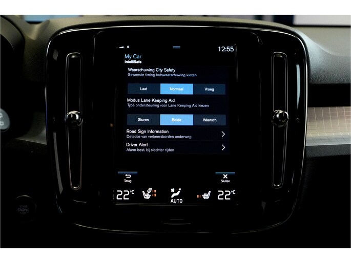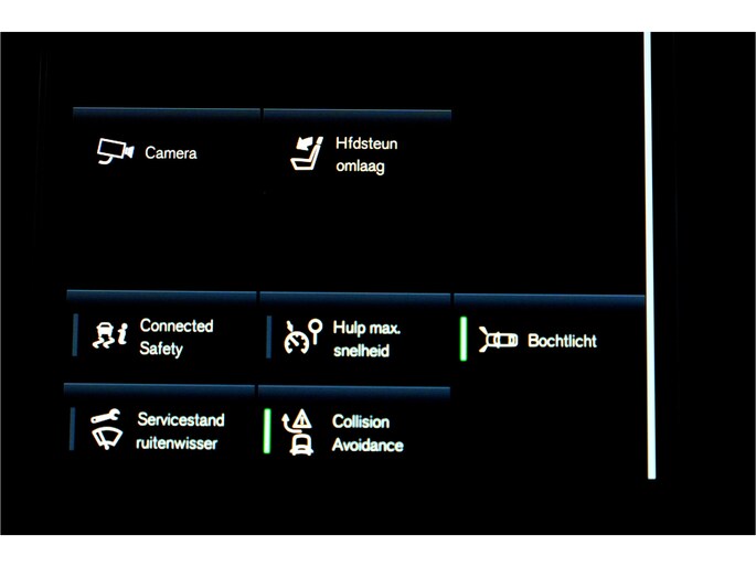 In deze auto zijn verschillende technologieën aanwezig die voor u het verkeer en de omgeving in de gaten houden en die desnoods ook kunnen remmen of bijsturen. Verkeersbord-detectie herkent verkeersborden en toont deze op het instrumentarium van de auto. Indien u onbedoeld de rijstrook lijkt te verlaten, reageert het Lane-keeping systeem meteen en corrigeert. U bent mede dankzij City Safety System, forward collision warning system, hill hold functie, brake assist, vermoeidheidsherkenning en bandenspanningcontrolesysteem steeds veilig onderweg.