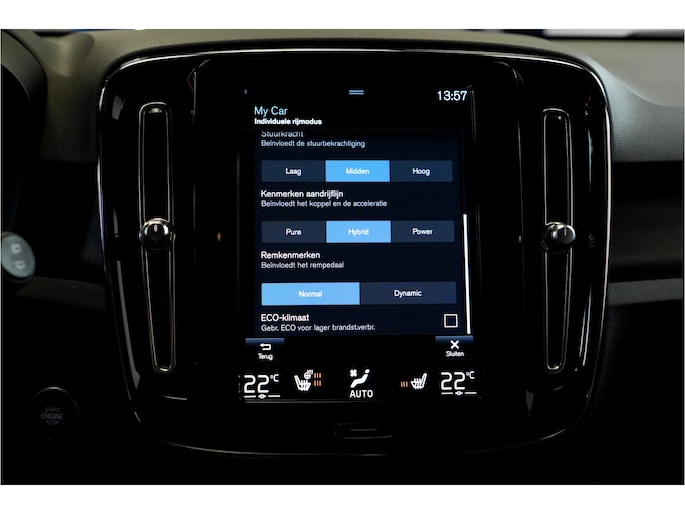 Deze Volvo XC40 staat garant voor vele veilige en comfortabele kilometers. De hybride motor van deze Volvo XC40 zorgt dat u opvallend veel minder brandstof verbruikt dankzij de ondersteuning van de elektromotor met z'n eigen accu. En die laadt u al rijdend bij. Slim en zuinig! De ruime lichtinval door het elektrisch bediende glazen panorama dak zorgt voor een heerlijk ruim gevoel. Met één klik te openen voor frisse lucht en een mild windje in de auto. Dat is gemak en plezier! Overigens is het happy-klik gevoel ook aanwezig bij de elektrisch bedienbare achterklep. De meegeleverde stoelverwarming zorgt in no time voor een behaaglijk gevoel als het buiten koud is. Bij deze Volvo XC40 is aan alles gedacht, tot en met een verwarmd stuurwiel aan toe. De kwaliteit van de matrix LED-verlichting geeft het gevoel dat u bij daglicht rijdt. Ook 19 inch lichtmetalen velgen, warmtewerend glas, drive mode control, zwarte hemelbekleding, dakspoiler en in delen neerklapbare achterbank zijn aan boord.