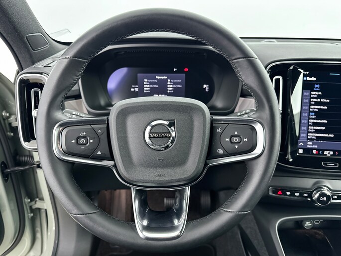 Deze Volvo XC40 is innovatie op zijn best. Hij is ontworpen als een unieke combinatie van rijplezier en zorg voor het milieu. Nooit meer naar de pomp! De elektromotor opladen en rijden maar! De krachtige motor geeft deze Volvo uitstekende prestaties. Ga samen met uw bijrijder lekker zitten in de verwarmbare voorstoelen. Relaxt rijden? Dan zijn de comfortstoelen een regelrechte extra. Een handige voorziening op deze auto is de elektrische achterklep die u op afstand kunt openen. Fijn plusje, zeker in de kille dagen, is het verwarmd stuurwiel. Bij de rijke uitrusting horen ook 19 inch lichtmetalen velgen, LED koplampen, extra getint glas, in delen neerklapbare achterbank, LED-achterlichten en verstelbare lendensteunen. Pas de interface van uw cockpit moeiteloos aan. Het is mogelijk door het digitale dashboard in deze auto. Strak inparkeren wordt een fluitje van een cent door de achteruitrijcamera. Met adaptive cruise control houdt de auto zelfstandig afstand tot uw voorligger. Een veiligheidsverhogende optie waarmee u comfortabel onderweg bent. Communiceren met uw auto? Dat gaat via remote services. Met uw smartphone maakt u waar dan ook contact om allerlei functies te checken of te activeren. U kunt tijdens de rit uw ogen steeds op de weg houden, want het audio-installatiesysteem (met DAB!) en het full map navigatiesysteem kunt u bedienen vanaf het stuur of met spraak. Deze auto is voorzien van achteropkomend verkeer waarschuwing, kruisend verkeer detectie, electronic climate control, draadloos opladen, regensensor en keyless entry. In deze auto zijn verschillende technologieën aanwezig die voor u het verkeer en de omgeving in de gaten houden en die desnoods ook kunnen remmen of bijsturen. De actuele snelheidslimiet, een inhaalverbod en andere verkeersborden; de verkeersborddetectie ondersteunt u tijdens elke rit. Het Lane-keeping systeem zorgt voor een automatisch constante positie binnen de rijstrook. Afdwalen is uitgesloten. De dodehoekdetectie waarschuwt als een ander voertuig zich in uw dode hoek bevindt. U bent mede dankzij forward collision warning system, hill hold functie, brake assist, vermoeidheidsherkenning en bandenspanningcontrolesysteem steeds veilig onderweg. Elektrisch rijden is een verademing. Eén belletje is genoeg voor een proefrit. Wanneer zullen we 'm klaarzetten?