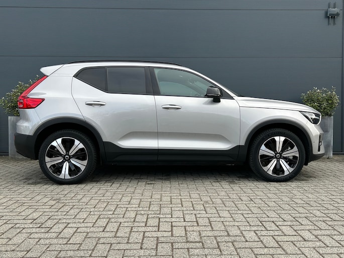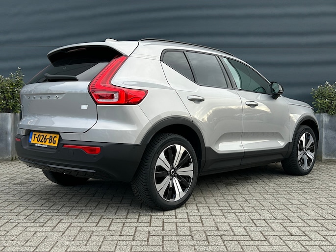 Duurzame mobiliteit is niet langer een ongrijpbare droom. Volvo maakt het waar met de innovatieve elektrische XC40. De voordelen van de elektromotor spreken voor zich: stil, schoon en snel! Een krachtige motor geeft deze auto zijn sportieve prestaties. Ruimte? Ja hoor! Open maar eens de elektrisch bedienbare achterklep en check de bagageruimte; stap daarna in om het weidse gevoel te ervaren dat het elektrisch bediende glazen panorama dak u bezorgt. Ga samen met uw bijrijder lekker zitten in de verwarmbare voorstoelen. De comfortstoelen zorgen voor een optimale zithouding onderweg. Een verwarmd stuurwiel overbodige luxe? Wacht maar tot het kouder wordt! Ook 19 inch lichtmetalen velgen, LED koplampen, extra getint glas, in delen neerklapbare achterbank, LED-achterlichten en verstelbare lendensteunen zijn aan boord. Wat ook opvalt, is de strakke en overzichtelijke informatie die het digitale dashboard levert. De vier camera's die samen de 360 graden camera vormen, bieden u de mogelijkheid om obstakels in elke richting te zien. Met adaptive cruise control houdt deze auto automatisch afstand tot uw voorligger. Dankzij Connected Services heeft u overal en altijd uw dashboard op zak. Alle belangrijke functies zijn te checken via de app. Een massieve sound of fluisterzachte verstaanbaarheid? Het high performance audiosysteem presteert op topniveau. Wat u ook in deze auto kunt vinden zijn dashboard met spraakbediening, full map navigatiesysteem, achteropkomend verkeer waarschuwing, kruisend verkeer detectie, electronic climate control en draadloos opladen. In deze auto zijn verschillende technologieën aanwezig die voor u het verkeer en de omgeving in de gaten houden en die desnoods ook kunnen remmen of bijsturen. Verkeersbord-detectie herkent verkeersborden en toont deze op het instrumentarium van de auto. Onbedoeld buiten de rijstrook raken wordt voorkomen door het Lane-keeping systeem. Voertuigen of personen buiten uw zicht kunnen gevaar opleveren. De actieve dodehoekdetectie waarschuwt direct. Bovenop deze veiligheidsfeatures heeft deze Volvo bovendien forward collision warning system, hill hold functie, brake assist, vermoeidheidsherkenning en bandenspanningcontrolesysteem. Wat kunnen we verder nog zeggen? Tijd voor een elektrische proefrit! Neem contact op en maak meteen een afspraak.