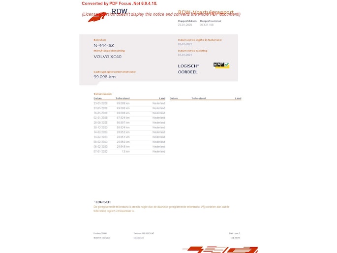 Kilometerstand gecontroleerd