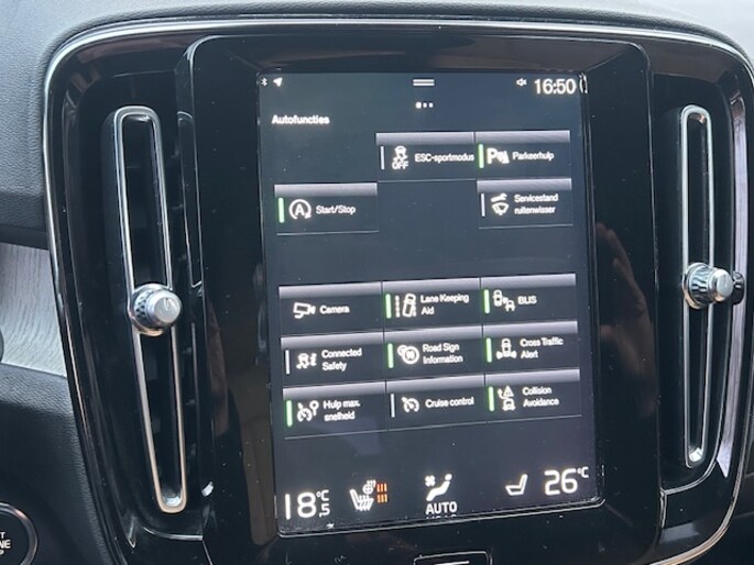 - Volvo Sensus Connect: 9" Touchscreen voor bediening van klimaat, audio, internetdiensten, apps, auto menu, uitgebreide Voice Control functionaliteit, Bluetooth telefoonsysteem met Bluetooth audiostreaming en optioneel Sensus navigatie