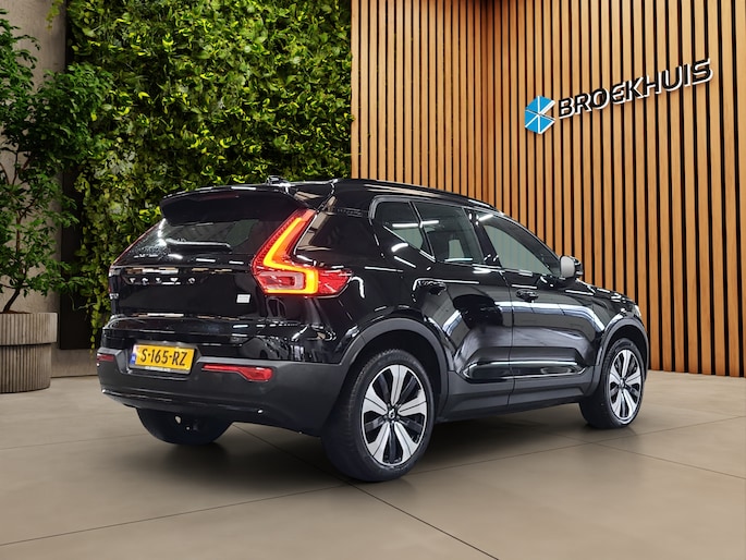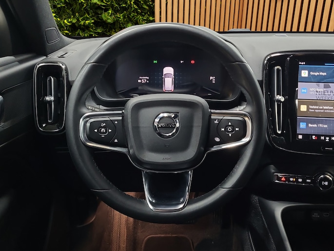 Valt u voor de styling van deze Volvo XC40? Of gaat u voor de slimme techniek? Wat u ook kiest, u krijgt altijd een auto met een volledig elektrische aandrijflijn. Een elektrische auto is echt niet meer alleen voor korte ritjes. Het rijbereik van deze auto biedt voldoende ruimte voor uw dagelijkse ritten. Daardoor kan het opladen vaak 's nachts gebeuren. Een krachtige motor geeft deze auto zijn sportieve prestaties. In de winter wordt het echt genieten met de stoelverwarming. De elektrisch bedienbare achterklep opent met een druk op de knop. Koude handen? Da's voorbij met het verwarmd stuurwiel. Pak aan! Ook 19 inch lichtmetalen velgen, LED koplampen, in delen neerklapbare achterbank, LED-achterlichten, verstelbare lendensteunen en snelheidsafhankelijke stuurbekrachtiging horen tot de voorzieningen op deze auto. Deze auto is voorzien van een digitaal dashboard waarmee u de cockpit-interface kunt personaliseren. Inparkeren? Met de achteruitrijcamera heeft u er geen omkijken meer naar! Eén druk op de knop en de elektrisch inklapbare trekhaak verdwijnt uit het zicht. Appen met uw auto? Geen probleem. U kunt van overal contact opnemen, de functies controleren en activeren. U bedient 'm met remote services. Een optie die de veiligheid verhoogt, is de bediening vanaf het stuur van het audio-installatiesysteem (met DAB-radio!) en het full map navigatiesysteem. Als u wilt kunt u beiden zelfs met uw stem bedienen. Ook is de Volvo uitgerust met: achteropkomend verkeer waarschuwing, kruisend verkeer detectie, electronic climate control, draadloos opladen, regensensor en cruise control. In deze auto zijn verschillende technologieën aanwezig die voor u het verkeer en de omgeving in de gaten houden en die desnoods ook kunnen remmen of bijsturen. Een belangrijke bijdrage aan de veiligheid onderweg levert de verkeersbord-detectie. Keep your lane? Het Lane-keeping systeem zorgt er automatisch voor. Mindert een voorligger onverwachts te veel vaart, dan komt de forward collision warning in actie en waarschuwt meteen. Ook helpen het hill hold functie, brake assist, vermoeidheidsherkenning en bandenspanningcontrolesysteem, uw rit tot een veilige rit te maken. Elektrisch rijden is een verademing. Eén belletje is genoeg voor een proefrit. Wanneer zullen we 'm klaarzetten?