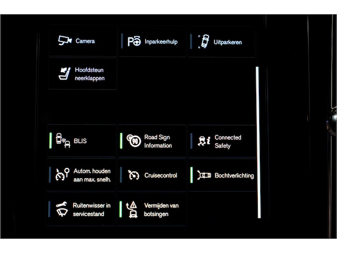 De geavanceerde technologie in deze Volvo is in staat om onderweg het verkeer om u heen te monitoren en er op te reageren. Zo hebt u als het ware een automatische co-piloot aan boord. U rijdt ook veiliger omdat deze auto voor u de verkeersborden langs de weg kan lezen. De belangrijkste borden worden op uw instrumentarium geprojecteerd, zodat u ze niet kunt missen. Keep your lane? Het Lane-keeping systeem zorgt er automatisch voor. Rijdt een ander voertuig in uw dode hoek dan waarschuwt het systeem met een signaal. Bovenop deze veiligheidsfeatures heeft deze Volvo bovendien City Safety System, forward collision warning system, hill hold functie, brake assist, vermoeidheidsherkenning en bandenspanningcontrolesysteem.