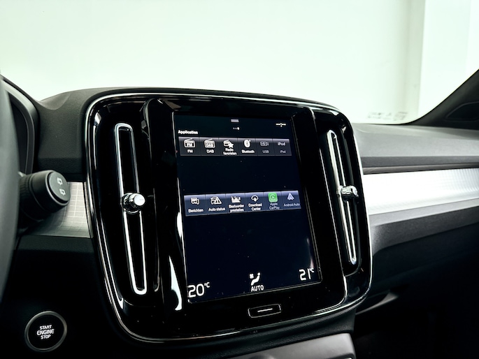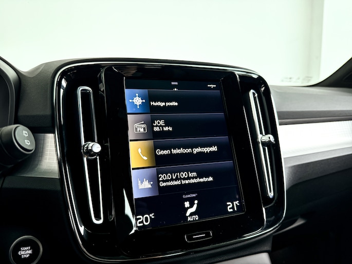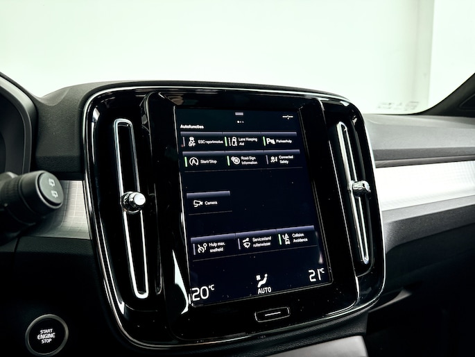 Tijdens de rit wordt u als bestuurder ondersteund door verschillende systemen die de weg en uw omgeving in de gaten houden. In het instrumentarium laat de verkeersborddetectie de actuele verkeersborden zien. Deze Volvo XC40 is ook behulpzaam als het gaat om een rechte koers. Het Lane-keeping systeem signaleert en corrigeert als u onbedoeld de rijstrooklijnen dreigt te overschrijden. Ook als uw aandacht even verslapt, blijft de forward collision warning bij de wekker. Dreigt er een botsing met een voor- of tegenligger, dan waarschuwt het systeem direct. De auto is ook uitgerust met hill hold functie, brake assist, vermoeidheidsherkenning en bandenspanningcontrolesysteem.