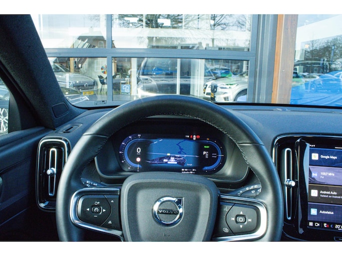 De acceleratie van de elektrische Volvo XC40 is indrukwekkend. Dit exemplaar heeft 54816 kilometer gelopen, het bouwjaar is 2022. De modernste techniek is toegepast om u in alle rust en stilte van de rit te laten genieten. Daarbij zult u zien dat de tijd om de accu's op te laden enorm meevalt, en dankzij de flinke actieradius hoeft u dat ook niet zo vaak te doen. Tijdens gure dagen is het prettig zitten in de verwarmbare voorstoelen. Ontspannen rijden in een optimale zithouding: daarvoor zorgen de comfortstoelen. De bagageruimte is toegankelijk via een comfortverhogende elektrische achterklep. Bij de zeer complete uitrusting van deze auto behoren ook 19 inch lichtmetalen velgen, LED koplampen, in delen neerklapbare achterbank, LED-achterlichten, verstelbare lendensteunen en snelheidsafhankelijke stuurbekrachtiging.