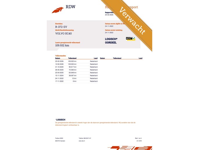 Kilometerstand gecontroleerd