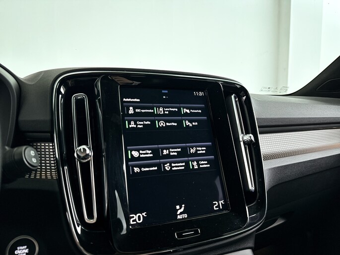 In de Volvo XC40 heeft uw veiligheid en die van uw omgeving prioriteit. U rijdt ook veiliger omdat deze auto voor u de verkeersborden langs de weg kan lezen. De belangrijkste borden worden op uw instrumentarium geprojecteerd, zodat u ze niet kunt missen. Het Lane-keeping systeem let constant op en waarschuwt of corrigeert als u onoplettend over de lijnen van de rijstrook gaat. De actieve dodehoekdetectie voorkomt dat u een voertuig over het hoofd ziet en waarschuwt tijdig. In deze Volvo vinden we verder een forward collision warning system, hill hold functie, brake assist, vermoeidheidsherkenning en bandenspanningcontrolesysteem.