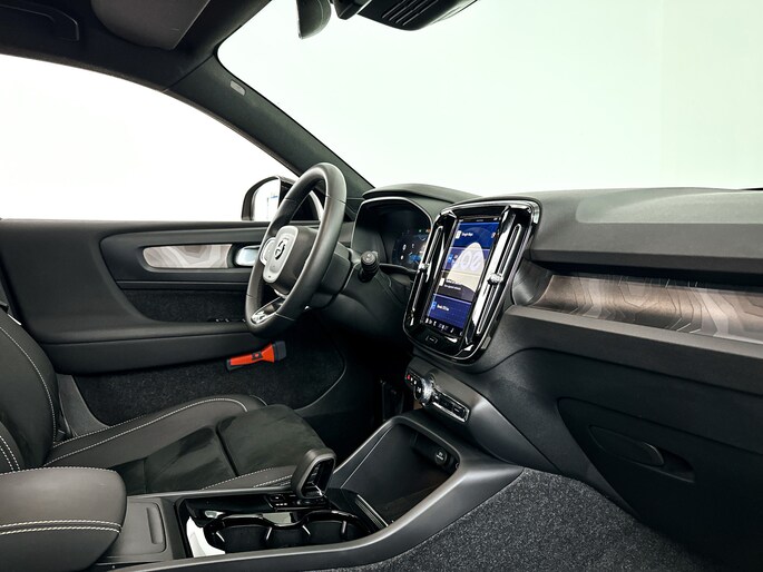 Nooit meer tanken. Een laadkabel volstaat om het accupakket van deze Volvo XC40 op te laden. U kunt ervoor kiezen vanwege het milieu. Maar de elektromotor biedt ook power en prestaties! Een krachtige motor geeft deze auto zijn sportieve prestaties. U zit er altijd warmpjes bij door de stoelverwarming. Met een druk op de knop gaat de elektrische achterklep open. Bij de uitrusting van deze Volvo horen onder meer 19 inch lichtmetalen velgen, LED koplampen, donker getint glas achter, in delen neerklapbare achterbank, LED-achterlichten en verstelbare lendensteunen.