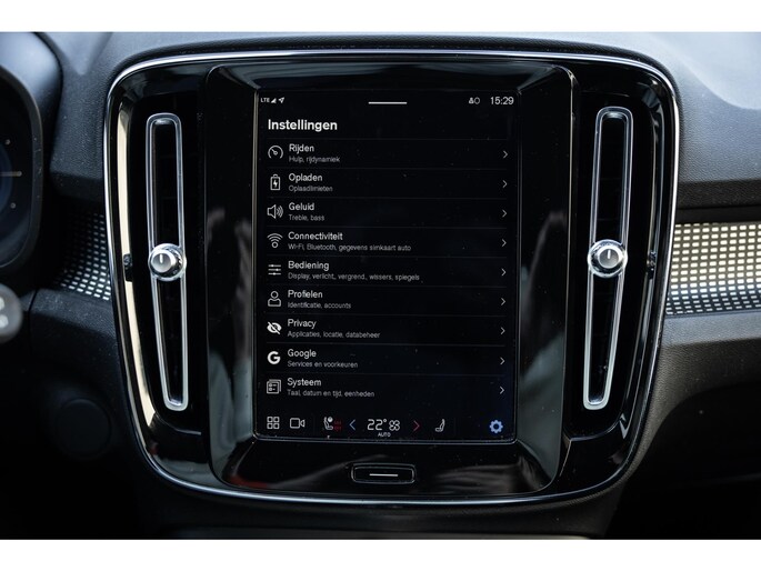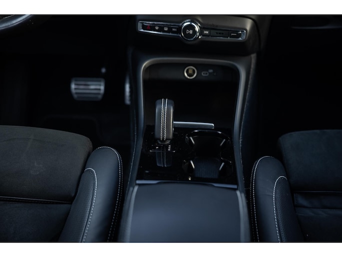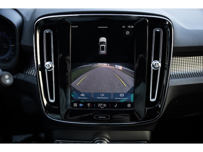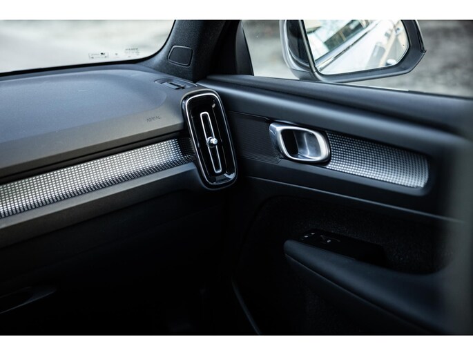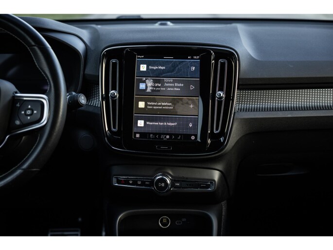 Binnenin de XC40 gaat het verder. Sportstoelen bieden een fijne zitpositie. Ze zijn bekleed in Nappa leder gecombineerd met Nubuk. Uiteraard voorzien van stoelverwarming. Ook het stuurwiel is overigens verwarmd. Voor je prijkt het digitale dashboard dat volledig naar wens is in te delen en alle belangrijke informatie weergeeft. Centraal tref je het grote verticale touchscreen. Hier bedien je alle belangrijke zaken zoals het multimediasysteem met onder meer Apple CarPlay en Android Auto, het Google Maps navigatiesysteem, telefonie, rijassistenten en legio andere instellingen. Op dit scherm wordt ook het camerabeeld van de achteruitrijcamera weergegeven. De auto ontgrendeld volledige key-less. De XC40 biedt vrijwel iedere rij assistent. Denk hierbij aan adaptieve cruise control, dodehoekdetectie, lane assist, collisionwarning rondom, uitstap assistent en verkeerbordherkenning. De LED koplampen zijn voorzien van Light Intelligent System. Bij grootlicht werkt de bundel volledig adaptief. Heel fraai is de zwarte hemelbekleding en de achterklep opent volledig elektrisch.