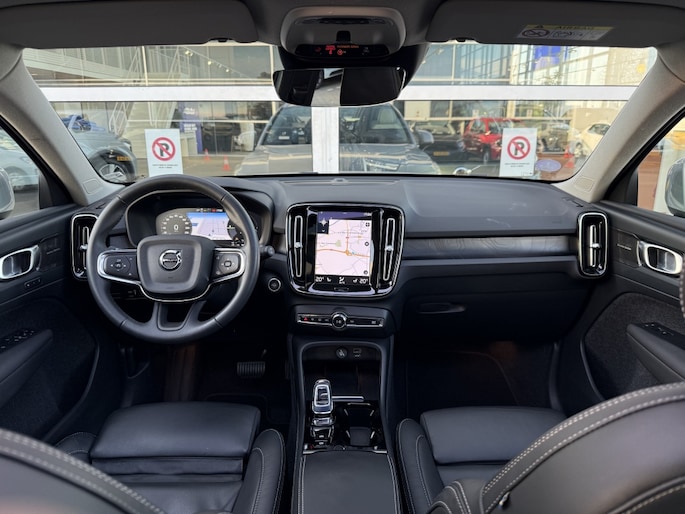 Stap in en geniet van het luxe interieur met lederen bekleding en stoelverwarming voor extra comfort, vooral op koude dagen. Het Panoramadak zorgt voor een heerlijk ruimtelijk gevoel en laat veel natuurlijk licht binnen in de auto. Voor een uitstekende muziekervaring onderweg is de Volvo XC40 voorzien van een hoogwaardig Harman Kardon audiosysteem.