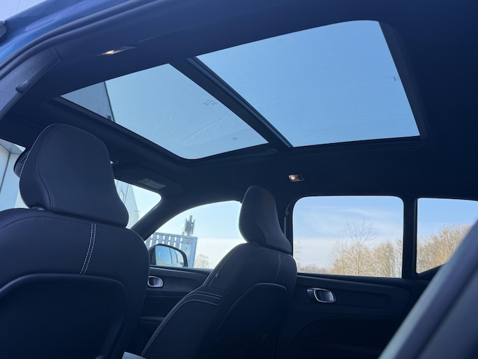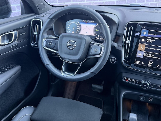 Zijn dynamische uiterlijk maakt al direct duidelijk wat voor rijervaring u van deze Volvo XC40 mag verwachten: pure sportiviteit. Met de pittige benzinemotor haalt u veel kilometers uit een volle tank. Inladen is een eitje met de elektrisch bedienbare achterklep. En voor een frisse wind tijdens de rit is er het elektrisch bediende glazen panorama dak. 's Winters komen de verwarmbare voorstoelen heerlijk van pas. Relaxt én fit op weg? Dan geniet u zeker van de comfortstoelen. Een heerlijk luxe optie van deze auto is het verwarmbare stuurwiel. Bij de uitrusting van deze Volvo horen onder meer 20 inch lichtmetalen velgen, LED koplampen, extra getint glas, in delen neerklapbare achterbank, LED-achterlichten en verstelbare lendensteunen.