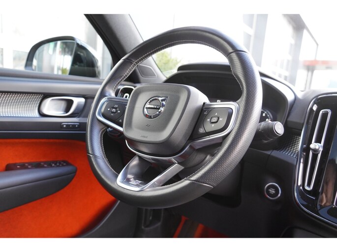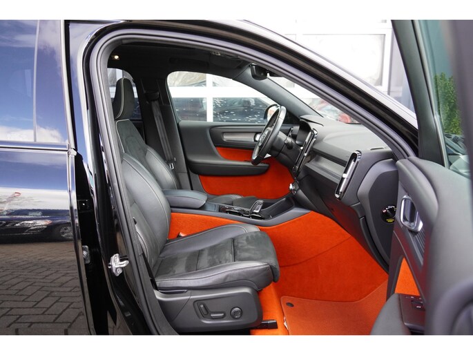 Wat deze XC40 direct onderscheidt, is het stijlvolle interieur met de unieke oranje stoffen accenten in onder andere het tapijt en de vloerbekleding. In combinatie met het panoramadak ontstaat een lichte, moderne en hoogwaardige sfeer in het interieur.