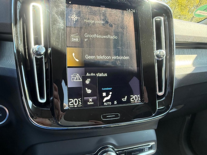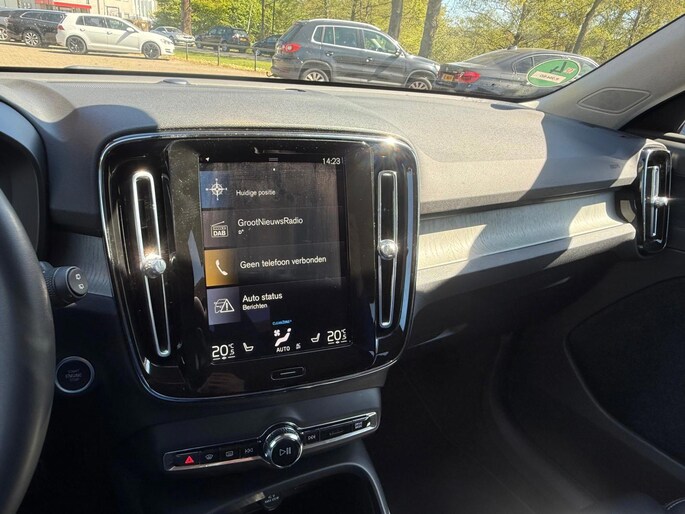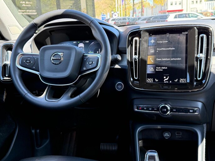 Binnenin biedt de XC40 een hoogwaardige en moderne omgeving. Het digitale dashboard geeft alle belangrijke informatie overzichtelijk weer en draagt bij aan de eigentijdse uitstraling van het interieur. Het Sensus Connect infotainmentsysteem met High Performance audio zorgt voor een prettige en intuïtieve bediening van media en functies. Dankzij Apple CarPlay en Android Auto is je smartphone eenvoudig te koppelen, zodat navigatie, muziek en apps altijd binnen handbereik zijn.