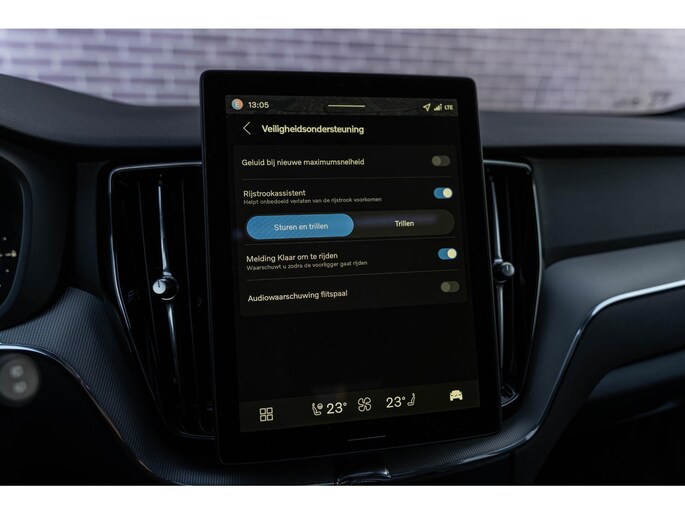 Deze Volvo is voorzien van verschillende intelligente veiligheidsvoorzieningen. Ze kijken tijdens het rijden als het ware met u mee, ze signaleren potentieel gevaarlijke situaties en in een aantal gevallen kunnen ze ook ingrijpen. Tijdens de rit hebt u altijd een bijrijder, want de verkeersbord-detectie leest de borden langs de weg en projecteert ze voor u op het instrumentarium. Mooi binnen de lijnen van de rijstrook blijven? Het Lane-keeping systeem helpt altijd een handje. De dodehoekdetectie waarschuwt als een ander voertuig zich in uw dode hoek bevindt. Dankzij veiligheidsvoorzieningen als forward collision warning system, hill hold functie, brake assist, vermoeidheidsherkenning en bandenspanningcontrolesysteem, bent u steeds veilig onderweg.