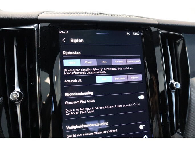 - Adaptive Cruise Control (reguliere cruise control vervalt) met Pilot Assist (de auto kan zelfstandig accelereren, remmen en sturen tot 130 km/u buiten