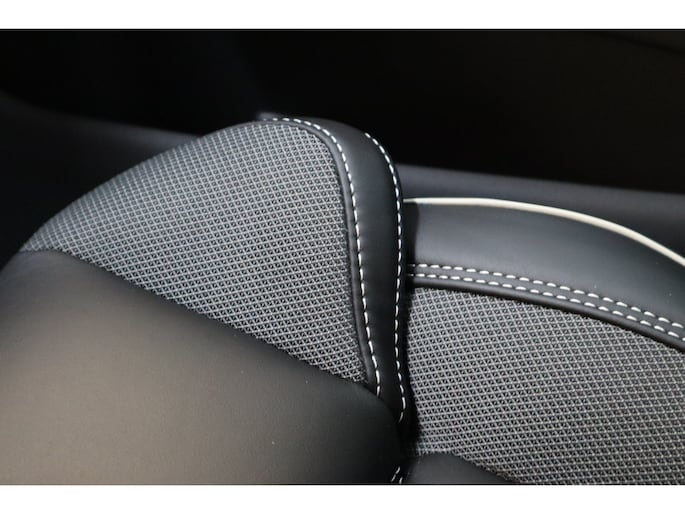 - Interieur: Nappa leder/Open Grid textiel bekleding met contourstoelen (sportstoelen), Orrefors™ kristallen pookknop, Zwarte hemelbekleding, Metal Mesh aluminium inleg