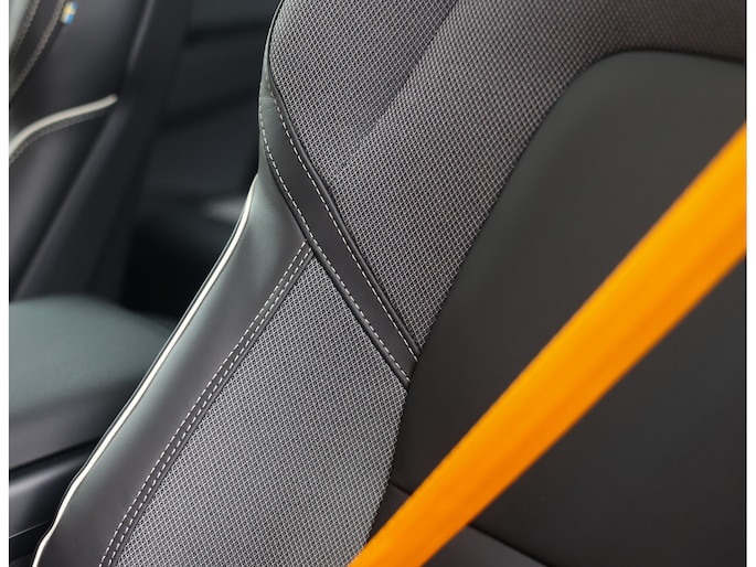 Ook het interieur sluit naadloos aan op dit karakter. U neemt plaats in Charcoal lederen sportstoelen met contrasterende stiksels, terwijl de goudgele veiligheidsgordels direct duidelijk maken dat u met een bijzondere uitvoering onderweg bent. Het comfortniveau ligt hoog, met onder meer een Bowers & Wilkins audiosysteem, een panoramadak en stoelverwarming voor zowel de voor- als achterpassagiers.
