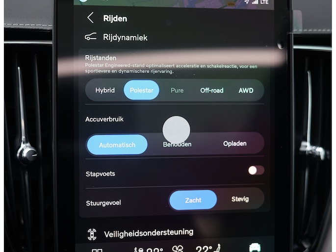 De lak in Aurora Silver metallic vormt een sterke combinatie met de hoogglans zwarte accenten en geeft de auto een uitgesproken sportieve uitstraling. Het betreft hier bovendien de Polestar Engineered uitvoering, herkenbaar aan de 22 inch velgen, de goudkleurige remklauwen met Polestar Engineered opschrift en, voor wie oog heeft voor detail, de ventieldopjes die subtiel in dezelfde kleur zijn uitgevoerd.