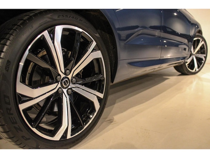 Laten we beginnen met het exterieur. Het eerste wat ons opvalt zijn de originele 21 inch Volvo velgen. En dan de kleur! Wat ons betreft de mooiste Volvo kleur, Denim Blue! Een diepe metallic lak met een waanzinnige glans.