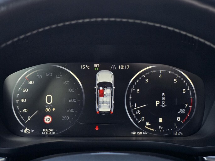 Met het digitale dashboard van deze auto is de aanpassing van uw cockpitinterface een fluitje van een cent. Met de hulp van vier camera's, biedt de 360 graden camera op deze auto een panoramisch zicht, wat bijzonder nuttig is bij het parkeren en manoeuvreren. Met adaptive cruise control houdt de auto zelfstandig afstand tot uw voorligger. Een veiligheidsverhogende optie waarmee u comfortabel onderweg bent. Praat tegen deze auto en de auto doet wat u wilt dankzij de ingebouwde spraakbediening. Dankzij Connected Services weet u precies waar uw auto geparkeerd staat. Ook andere functies, zoals bandenspanning en brandstofniveau, zijn via de app altijd onder handbereik. Deze Volvo is voorzien van high performance audiosysteem, navigatiesysteem met harde schijf, achteropkomend verkeer waarschuwing, R-design, kruisend verkeer detectie en electronic climate control.