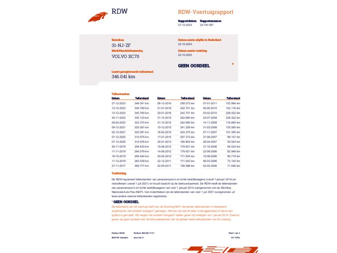 Deze Volvo XC70 komt uit 2003, werd geleverd van 15-07-2002 tot 30-06-2004 en kostte toen € 61.725,-. Deze originele Nederlandse personenauto staat sinds 2003 op kenteken, is voorzien van een benzine-motor, heeft een maximum vermogen van 154 kW (209 PK) en een cilinderinhoud van 2521 cc. De personenauto heeft een topsnelheid van 200 km per uur en bereikt vanuit stilstand de 100 km/u in 8,5 seconden. Het verbruik van deze personenauto is gemiddeld 11,1 liter per 100 km en hij weegt 1668 kg. De APK is geldig tot 15-12-2024 en de wegenbelasting bedraagt gemiddeld € 101.- per maand.