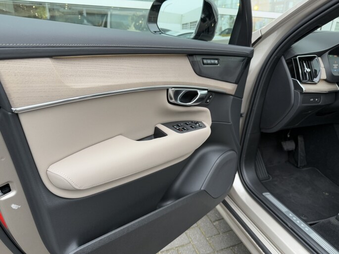 Het interieur van de XC90 is voorzien van Decordelen Houtlook Brown Ash, wat zorgt voor een luxueuze uitstraling en een warme sfeer in de auto. Daarnaast beschikt deze auto over geavanceerde rijassistentie systemen, waaronder Verkeerstekenherkenning (Road Sign Information, RSI) en Dodehoek-assistent (Blind Spot Information System, BLIS). Deze systemen helpen u veilig en comfortabel op weg, zodat u kunt vertrouwen op de slimme technologie van de XC90.