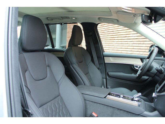 Een Volvo is één brok veiligheid, rijplezier en perfecte prestaties. 'Volvo for life', zeggen ze in Zweden. En dat merkt u meteen. Deze nieuwe auto is nu uit voorraad leverbaar. Rijden met deze Volvo XC90 is energiezuinig, want de hybride motor combineert brandstof met elektriciteit. Minder vaak langs de pomp, dus dat scheelt! Op pad met meer mensen? Dat kan! Met de elektrisch bedienbare achterklep is het makkelijk inladen en de derde zitrij zorgt voor nog meer zielen en nog meer vreugd aan boord. Toch voelt het heel ruim en licht, dankzij het elektrische bediende glazen panorama dak. U past de stoelen moeiteloos aan, ze zijn elektrisch in te stellen en hebben bovendien een geheugen. Hoogstaande comfortfuncties zoals stoelverwarming, verwarmbare achterbank en een verwarmbaar stuur maken deze auto tot een uitzonderlijke keuze. De koplampen zijn voorzien van matrix LED-verlichting waarmee u aanzienlijk verder kan kijken in het donker. Het systeem past zelf de lichtstraal aan op het moment tegenliggers verblind kunnen worden. Tot de uitrusting van deze Volvo behoren ook 21 inch lichtmetalen velgen en in delen neerklapbare achterbank.