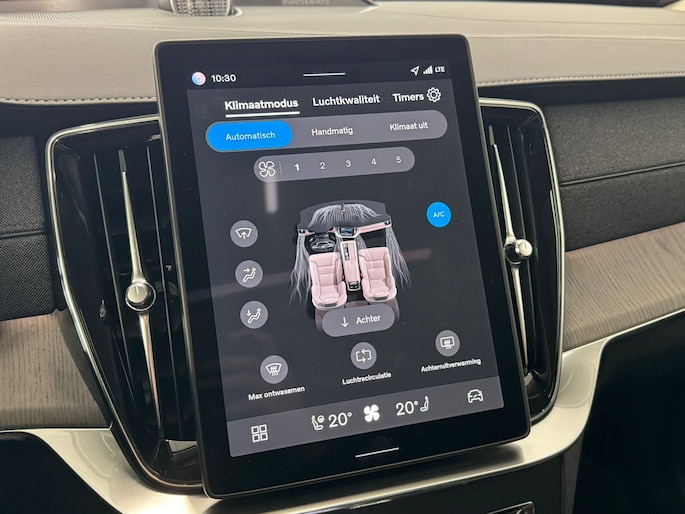 Modern design en bijzondere techniek bepalen de kwaliteiten van de hybride Volvo XC90. Een fraai voorbeeld van een hybride auto. Zuinig in brandstof door de pittige elektromotor en maximale actieradius dankzij de verbrandingsmotor. Dat stabiele weggevoel onder alle condities, da's nou een van de voordelen van luchtvering. Ook een fijne dosis klasse is bijgeleverd, met het lederen interieur. Hoe luxueus is het om tijdens de winter een verwarmde auto te hebben door de stuurverwarming, stoelverwarming met massagefunctie en verwarmbare achterbank. Dankzij de elektrische stoelbediening is het gemakkelijk om de optimale zitpositie te vinden. Zon en frisse lucht krijgen vrij spel dankzij het elektrisch bediende glazen panoramadak. De bagageruimte is toegankelijk via een comfortverhogende elektrische achterklep. Ook 3e zitrij met 2 stoelen, 21 inch lichtmetalen velgen, LED matrix verlichting, extra getint glas en in delen neerklapbare achterbank horen tot de voorzieningen op deze auto. Uw rit wordt comfortabel en veilig gemaakt door het digitale dashboard dat alles projecteert wat u wenst in de digitale wereld van mobiliteit. De 360 graden camera wordt mogelijk gemaakt door vier camera's die tezamen werken om zo een uitgebreid zicht te bieden, wat van grote waarde is bij het navigeren door smalle straatjes en parkeerplekken. Adaptive cruise control houdt de ingestelde snelheid vast en houdt afstand tot het voertuig voor u. Zo'n lekkere jonge auto heeft natuurlijk leuke extra's, zoals remote services. Met een speciale app maakt u overal verbinding met de auto. Zo kunt u functies activeren en controleren. Sublaag en tophoog... en alles daartussenin! Het high performance audiosysteem kan elke frequentie moeiteloos aan. Deze Volvo is voorzien van dashboard met spraakbediening, full map navigatiesysteem, achteropkomend verkeer waarschuwing, kruisend verkeer detectie, electronic climate control en draadloos opladen. Zoals u mag verwachten van deze Volvo XC90 is hij uitgerust met een reeks aan actieve veiligheidssystemen. Onderweg worden ritfuncties naar keuze op de voorruit geprojecteerd met de head-up display. In het instrumentarium laat de verkeersborddetectie de actuele verkeersborden zien. Het Lane-keeping systeem let constant op en waarschuwt of corrigeert als u onoplettend over de lijnen van de rijstrook gaat. Bovenop deze veiligheidsfeatures heeft deze Volvo bovendien dodehoekdetector detectiesysteem, forward collision warning system, hill hold functie, brake assist, vermoeidheidsherkenning en bandenspanningcontrolesysteem. Laat het ons meteen weten als u interesse heeft in deze auto, dan kunnen we een afspraak maken om u de auto te demonstreren.