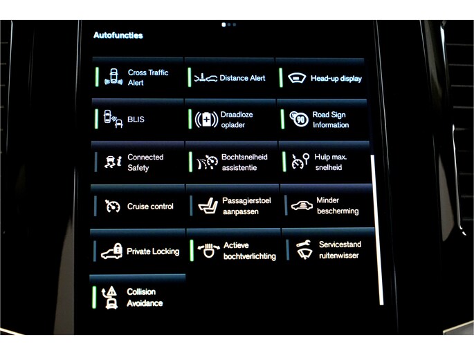 Het rijden met deze Volvo wordt nog meer ontspannen dankzij de innovatieve technieken die onderweg over uw veiligheid waken. Da's veilig! Alle informatie geprojecteerd op de voorruit via head-up display, zodat u uw ogen op de weg kunt houden! Een belangrijke bijdrage aan de veiligheid onderweg levert de verkeersbord-detectie. Een camera houdt de juiste koers binnen de rijstrook in de gaten en het Lane-keeping systeem corrigeert bij afwijkingen. U bent mede dankzij dodehoekdetector detectiesysteem, City Safety System, forward collision warning system, hill hold functie, brake assist en vermoeidheidsherkenning steeds veilig onderweg.