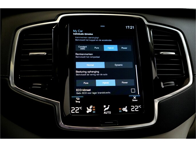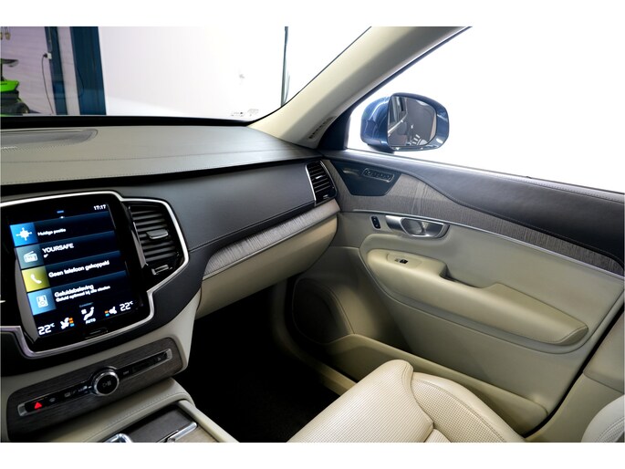 Alle technologie in de Volvo XC90 is er op gericht om uw rit veilig en gemakkelijk te laten verlopen. Dit mooie, dealeronderhouden exemplaar uit 2022 heeft 113702 kilometer op de teller staan. Deze Volvo XC90 heeft een hybride motor, dus een combi van brandstof en elektrisch. Een slim en milieuvriendelijk systeem dat ook nog eens lekker kostenbesparend is. U hóeft natuurlijk niet off-road te gaan om de voordelen van de vierwielaandrijving te ervaren... Maar het kán zeker wel! Lekker hoor, zo'n derde zitrij! Genoeg plek voor het hele team, en anders volop ruimte voor alle weekendboodschappen. Comfortabel zitten met rondom lederen interieur. En als u van gemak houdt: wat dacht u van het elektrisch bediende glazen panoramadak en de elektrische bediende achterklep? De verwarmbare voorstoelen met massagefunctie, het verwarmbare stuurwiel en de achterbankverwarming zorgen ervoor dat kou geen kans krijgt, en benadrukt dat dit een regelrechte verwenauto is. Neem plaats op de comfortabele stoelen. Dankzij de elektrische bediening en het geheugen is het eenvoudig om hierin de beste zitpositie te vinden. Wat een comfort, wat een wegligging! De luchtvering en de multicontour stoelen maken elke rit gerieflijk. Opvallend is de geavanceerde matrix LED-verlichting met daglichtkwaliteit. De koplampen dimmen automatisch het deel van de lichtstraal waar voor- of tegenliggers in rijden. De overige segmenten blijven aan en verlichten de weg maximaal. Natuurlijk behoren 21 inch lichtmetalen velgen, warmtewerend glas, instelbaar luchtgeveerd onderstel, dakspoiler en in delen neerklapbare achterbank ook tot de uitrusting van deze complete auto.