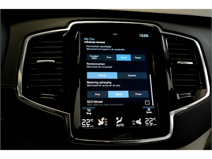 Het gecombineerde vermogen van een elektromotor plus een verbrandingsmotor geeft deze hybride Volvo zijn geweldige rijkwaliteiten. Dit is een dealeronderhouden XC90 van het bouwjaar 2021, hij heeft 131882 kilometer op de teller staan. De krachtige hybridemotor van deze auto is gekoppeld aan een 8-traps automatische transmissie. Deze Volvo XC90 heeft luchtvering, en dat is te merken. Altijd een gelijkmatige hoogte, uitstekende demping en een solide wegligging. De vierwielaandrijving is niet alleen heel prettig op onverharde wegen en nat wegdek, maar ook als je de bergen in gaat, bijvoorbeeld op wintersport. Om het af te maken is deze auto voorzien van een lederen interieur. Lang onderweg zijn kan een behoorlijke uitdaging zijn voor rug en schouders. Daarom zijn de verwarmbare voorstoelen voorzien van een weldadige massagefunctie. U past de stoelen moeiteloos aan, ze zijn elektrisch in te stellen en hebben bovendien een geheugen. Het interieur baadt in een zee van licht met het elektrische bediende glazen panoramadak. Ook is de auto voorzien van: verwarmd stuurwiel, elektrisch bediende achterklep met sensor, 3e zitrij met 2 stoelen, 21 inch lichtmetalen velgen, Full LED koplampen en adaptief onderstel.