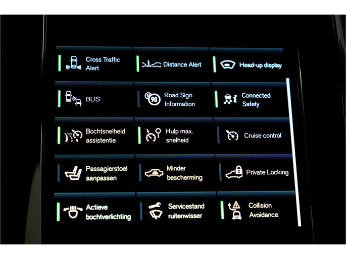 - Grafisch Head-up Display voor weergave van de ingestelde snelheid van de adaptieve cruise control, verkeersbordenherkenning en navigatie aanwijzingen (117)