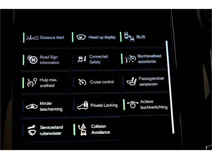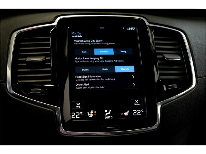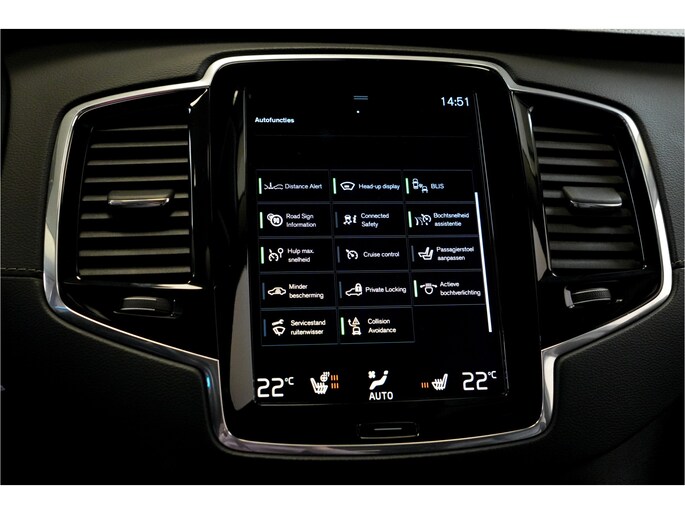 In de Volvo XC90 heeft uw veiligheid en die van uw omgeving prioriteit. Dat de auto steeds meer taken van de bestuurder overneemt, merkt u bijvoorbeeld aan het systeem voor verkeersbord-detectie in deze auto. Met het Lane-keeping systeem komt u nooit per ongeluk buiten de rijstrook. In een noodsituatie waarschuwt forward collision warning bij een dreigende aanrijding met een voorligger. U bent mede dankzij head-up display, dodehoekdetectie, City Safety System, hill hold functie, brake assist en vermoeidheidsherkenning steeds veilig onderweg.