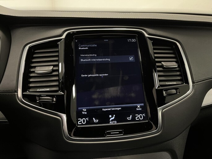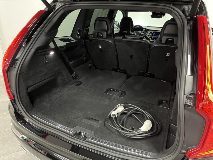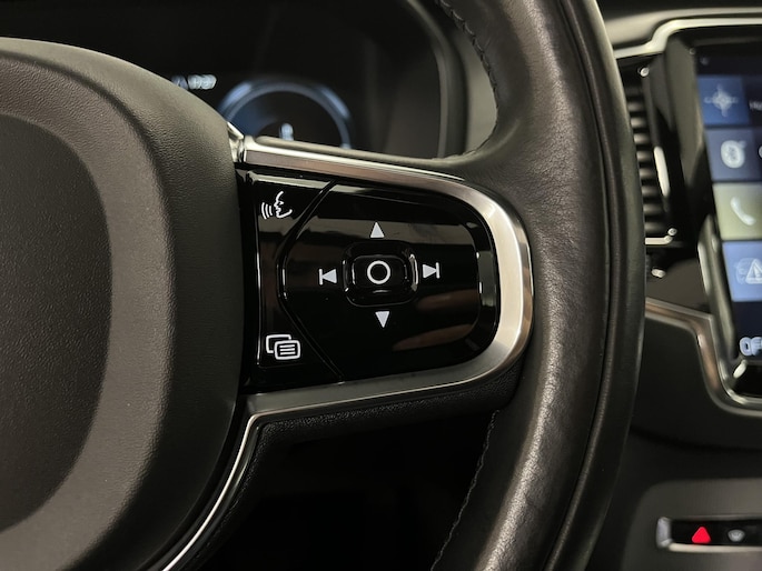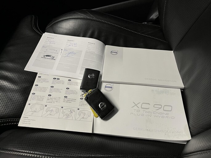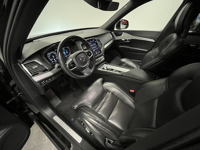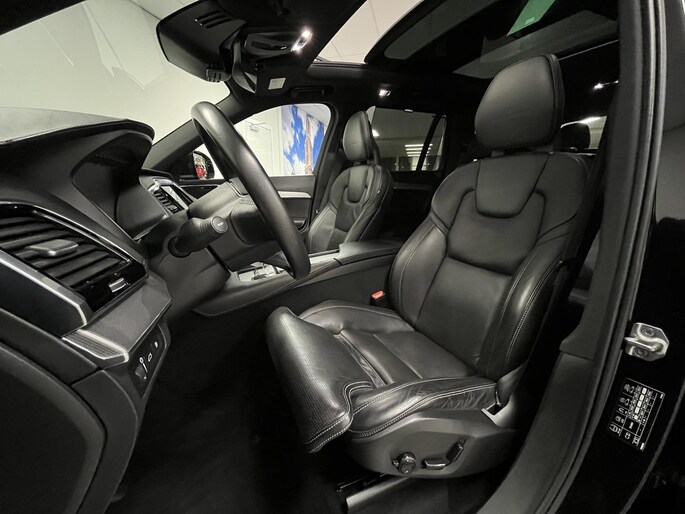 U rijdt gemakkelijk, comfortabel en zonder zorgen met deze Volvo XC90. Onder de motorkap een elektromotor en een verbrandingsmotor. Veel duurzame kilometers dus! Klinkers of asfalt? U merkt het verschil niet door de luchtvering. Als we het over extra cachet hebben, moeten we zeker het lederen interieur noemen. Zit u goed? De stoelen zijn eenvoudig instelbaar dankzij de elektrische bediening met geheugen. Hoogstaande comfortfuncties zoals stoelverwarming, verwarmbare achterbank en een verwarmbaar stuur maken deze auto tot een uitzonderlijke keuze. Het elektrisch bediende glazenpanorama dak zorgt voor licht en gevoel van ruime. Een handige voorziening op deze auto is de elektrische achterklep die u op afstand kunt openen. Natuurlijk behoren 3e zitrij met 2 stoelen, 20 inch lichtmetalen velgen, LED koplampen, extra getint glas, verstelbare lendensteunen en verwarmde ruitensproeiers ook tot de uitrusting van deze complete auto.