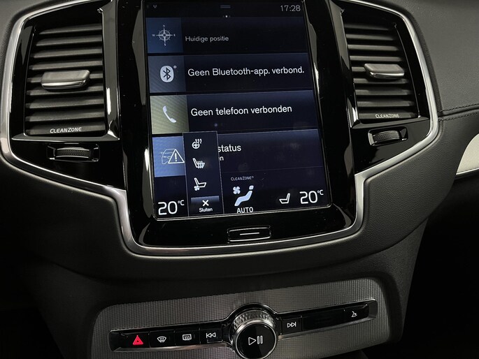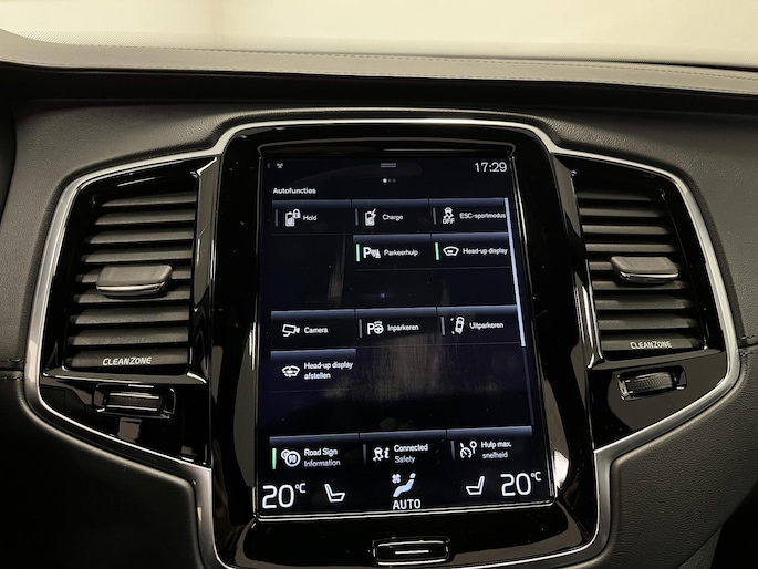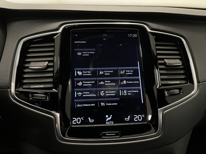 Zoals u mag verwachten van deze Volvo XC90 is hij uitgerust met een reeks aan actieve veiligheidssystemen. Dat de auto steeds meer taken van de bestuurder overneemt, merkt u bijvoorbeeld aan het systeem voor verkeersbord-detectie in deze Volvo. Het Lane-keeping systeem garandeert dat u zich niet onverhoeds buiten de lijnen van de rijstrook begeeft. Om te voorkomen dat u tijdens lange ritten achter het stuur in slaap valt, is deze auto voorzien van vermoeidheidsherkenning. De auto is ook uitgerust met head-up display, hill hold functie, brake assist en bandenspanningcontrolesysteem.
