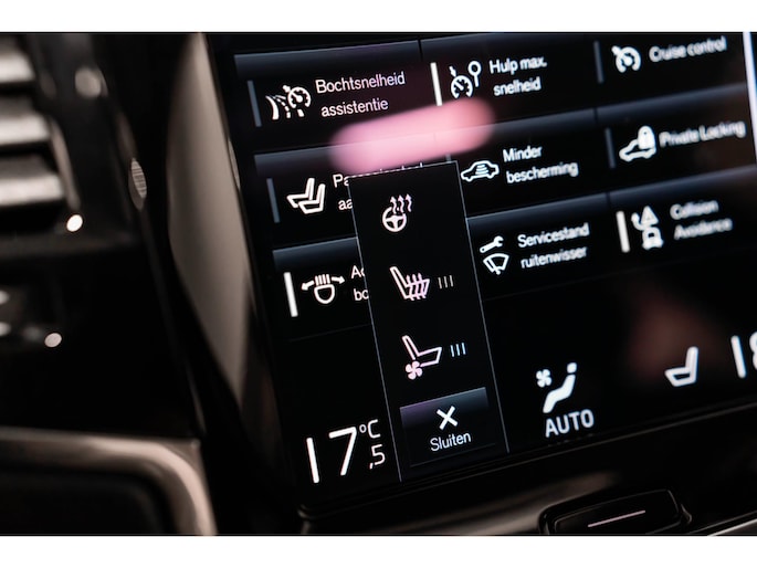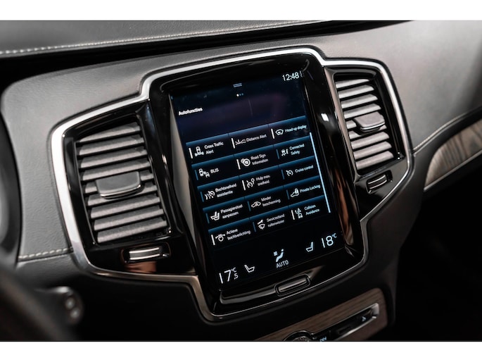 De nieuwste veiligheidssystemen komen in deze Volvo XC90 samen. De camera van de verkeersborddetectie herkent verschillende soorten verkeersborden en toont deze op het dashboard. Het Lane-keeping systeem registreert permanent of u binnen de lijnen van de rijstrook blijft; dwaalt u onbedoeld af, dan waarschuwt het systeem en corrigeert de koers. De actieve dodehoekdetectie draagt bij aan uw eigen veiligheid en die van uw medeweggebruikers. U bent mede dankzij head-up display, accident avoidance system, forward collision warning system, hill hold functie, brake assist en vermoeidheidsherkenning steeds veilig onderweg.