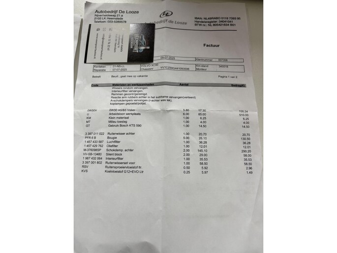 | Wegenbelasting/3mnd | € 662 - € 701 |