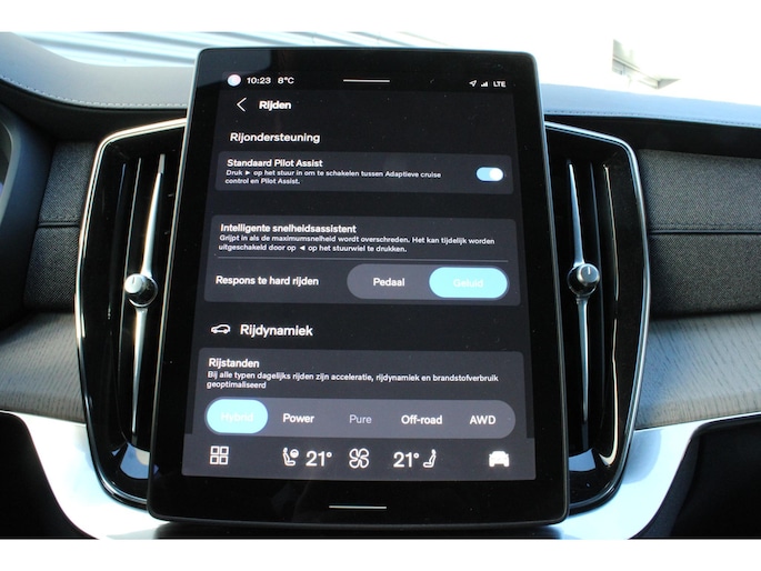 Dat u het milieu wilt sparen, wil nog niet zeggen dat u aan rijcomfort moet inleveren. De Volvo XC90 is een comfortabele en ruime hybride auto. Deze hybride auto beschikt over een verbrandingsmotor én een elektromotor. Daardoor rijdt de auto zeer comfortabel en is tegelijk zuinig in het verbruik. Deze Volvo XC90 heeft luchtvering, en dat is te merken. Altijd een gelijkmatige hoogte, uitstekende demping en een solide wegligging. Onder alle weersomstandigheden zorgt de stuurverwarming, stoelverwarming met massagefunctie en verwarmbare achterbank voor een liefdevolle warmte in de auto. Neem plaats op de comfortabele stoelen. Dankzij de elektrische bediening en het geheugen is het eenvoudig om hierin de beste zitpositie te vinden. Voel die ruimte eens! Lekker veel licht door het elektrisch bediende glazen panoramadak. Een handige voorziening op deze auto is de elektrische achterklep die u op afstand kunt openen. Met matrix LED-verlichting rijdt u eigenlijk altijd met groot licht, dus maximaal zicht. Toch is verblinden er niet bij, want het systeem regelt de verlichting zo dat tegenliggers er geen last van hebben. Tot de voorzieningen van deze auto behoren 3e zitrij met 2 stoelen, 21 inch lichtmetalen velgen en in delen neerklapbare achterbank.