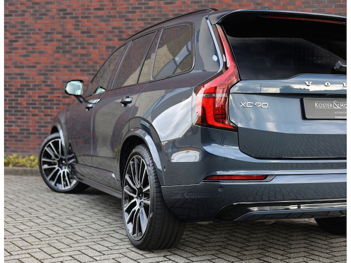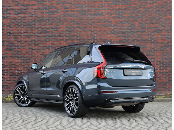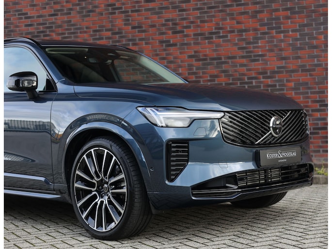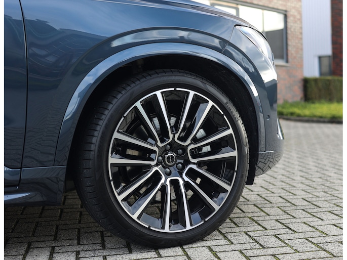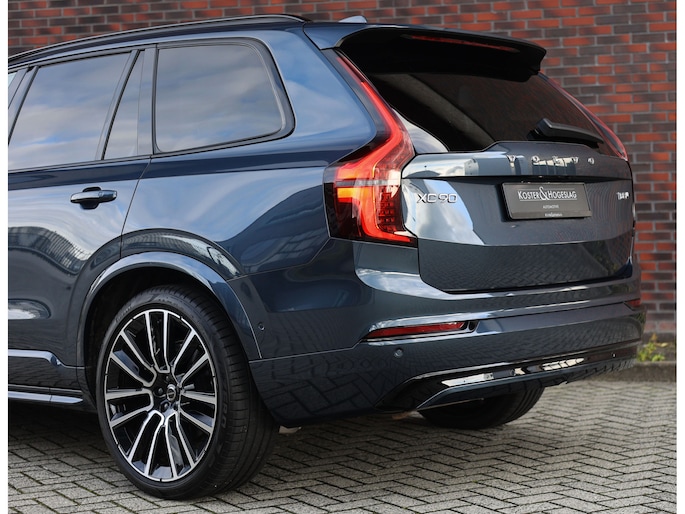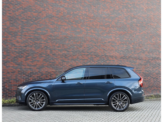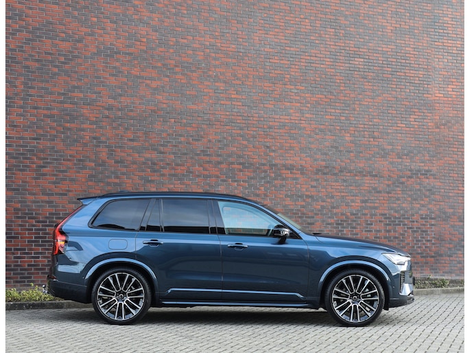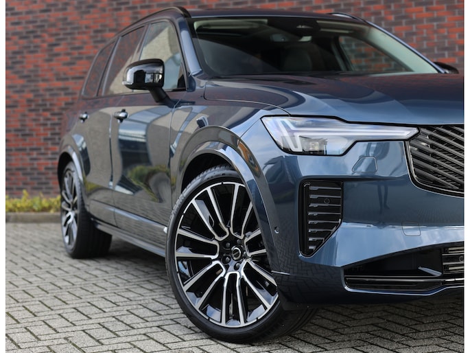 Dit specifieke exemplaar is uitgevoerd in Denim Blue metallic, een stijlvolle kleur die perfect past bij het karakter van de XC90. Dankzij de Ultra Dark-uitvoering zijn alle accenten uitgevoerd in hoogglans zwart, wat in combinatie met de 22-inch velgen en de privacybeglazing voor een krachtige, elegante uitstraling zorgt.